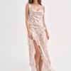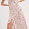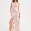 Get RSVP-ready in the Sawyer butter yellow maxi dress—a satin bias cut dress featuring an asymmetrical draped cowl neckline, a thigh-high slit, and chiffon ruffles throughout.