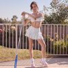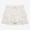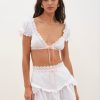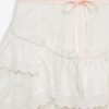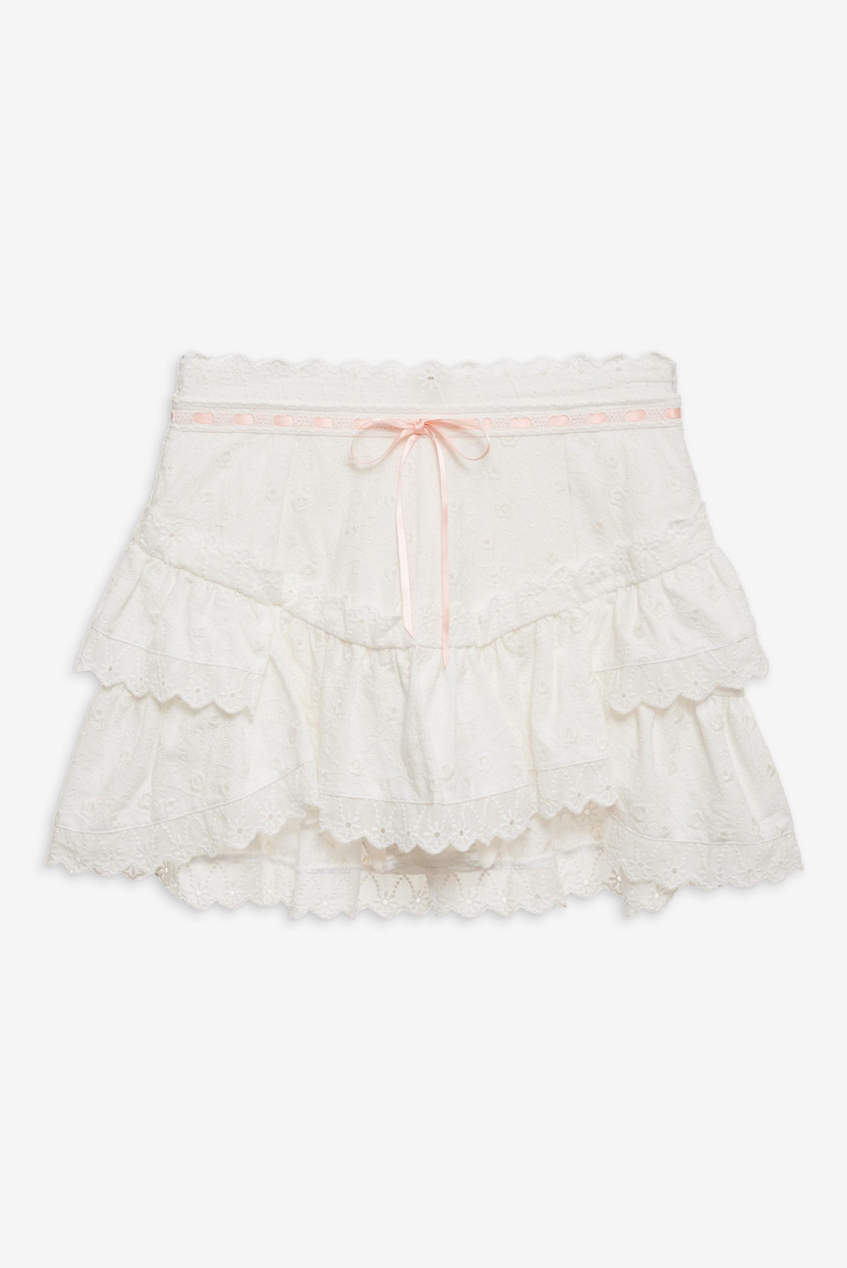 Made for the heat of summer, the Summer Swirl white mini skirt is perfect for days spent in the sun. Crafted in a delicate eyelet, this high-waisted mini skirt features tiered ruffles, a ruffled eyelet and slotted ribbon trim, and a delicate satin ribbon bow.