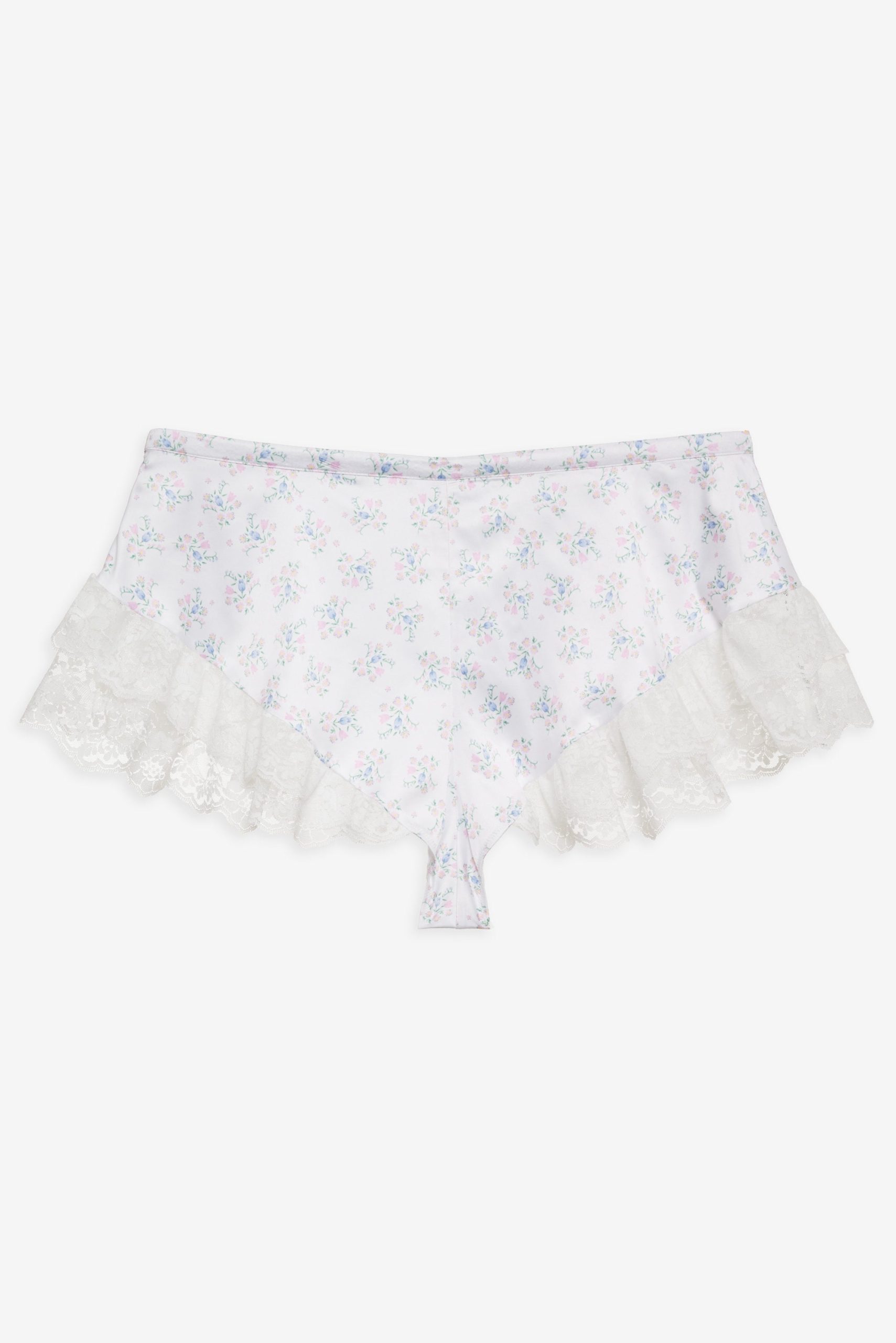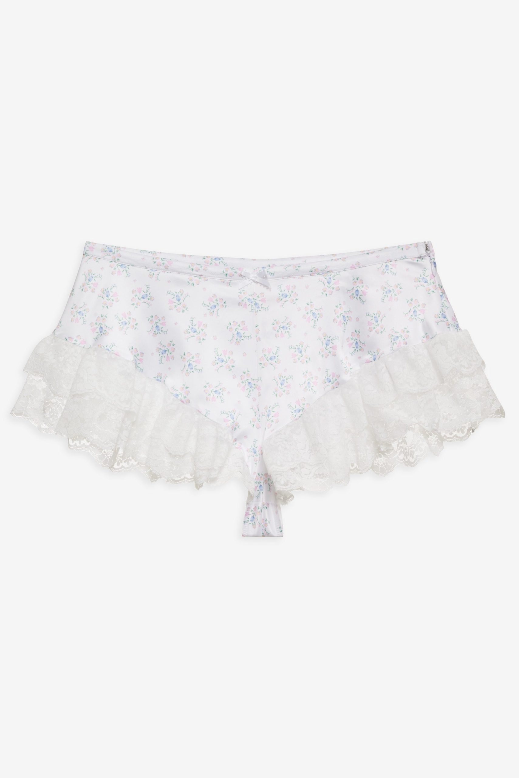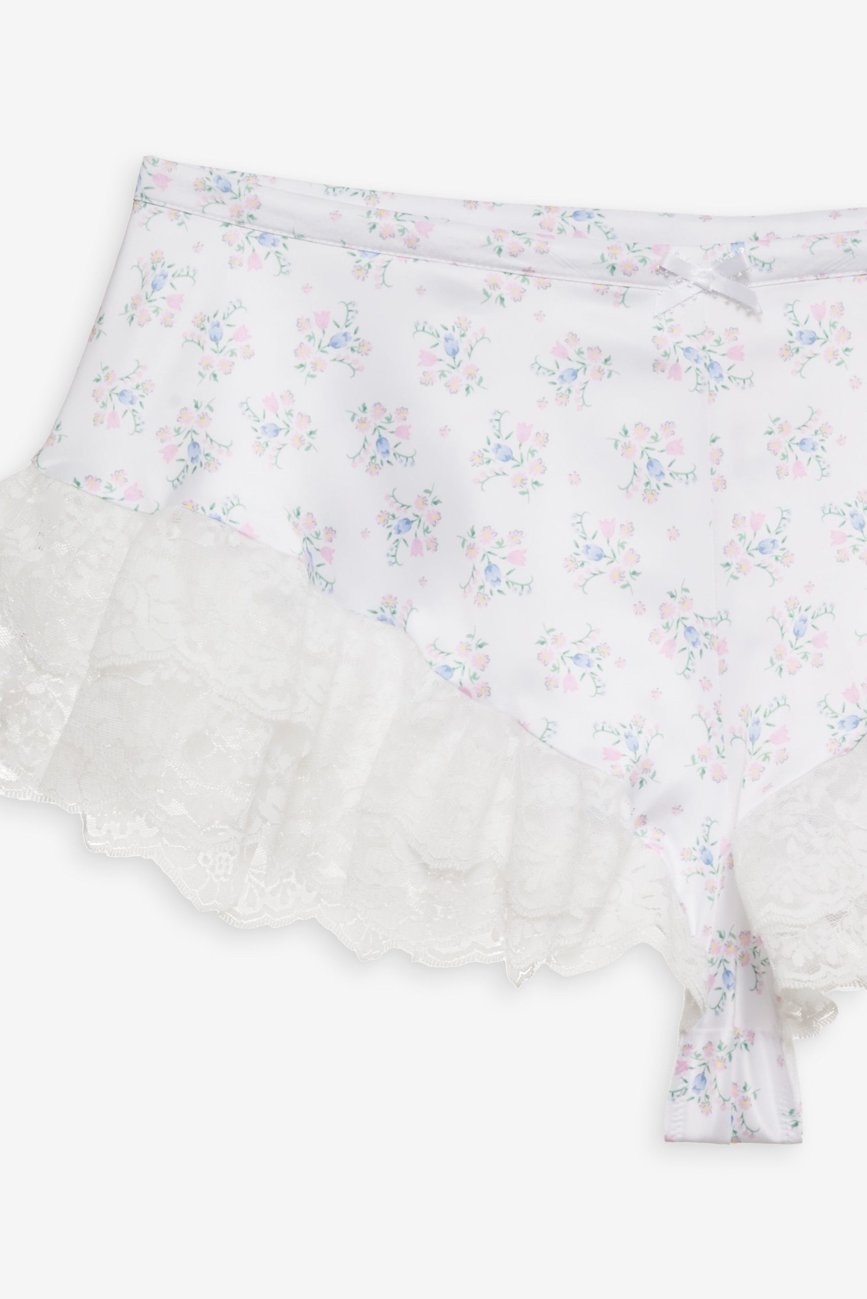 Inspired by heavenly European summers, the Sweet Escape white flutter short exudes timeless femininity. This printed satin pajama short spotlights two tiers of lace ruffles at the legline, plus a satin ribbon lingerie bow—pair it with the Sweet Escape Sleep Top for the full satin pajama set.