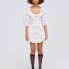 Become the ultimate Muse in wonderland in the Talia cream mini dress. Crafted in a heavyweight twill, this drop waist dress is embroidered with allover rosebuds and features a fully gathered skirt.