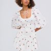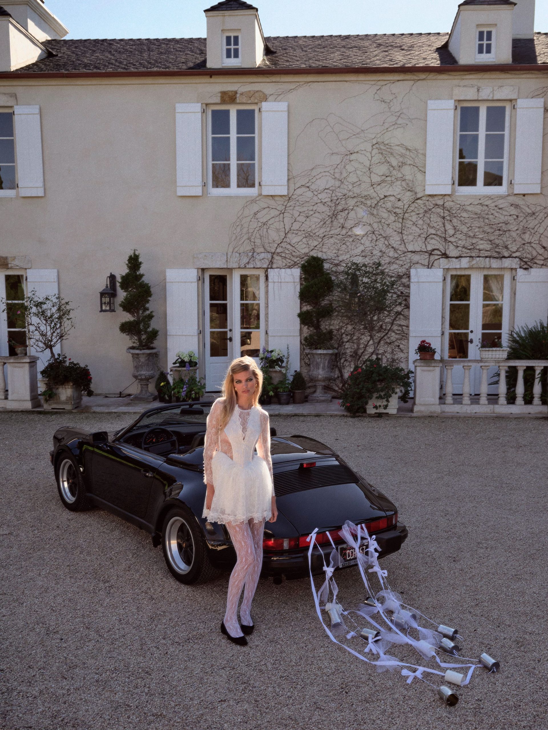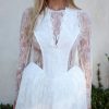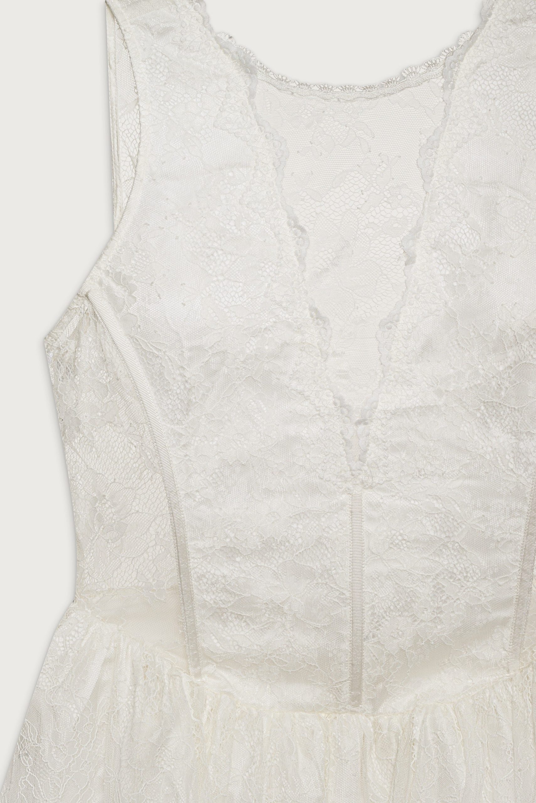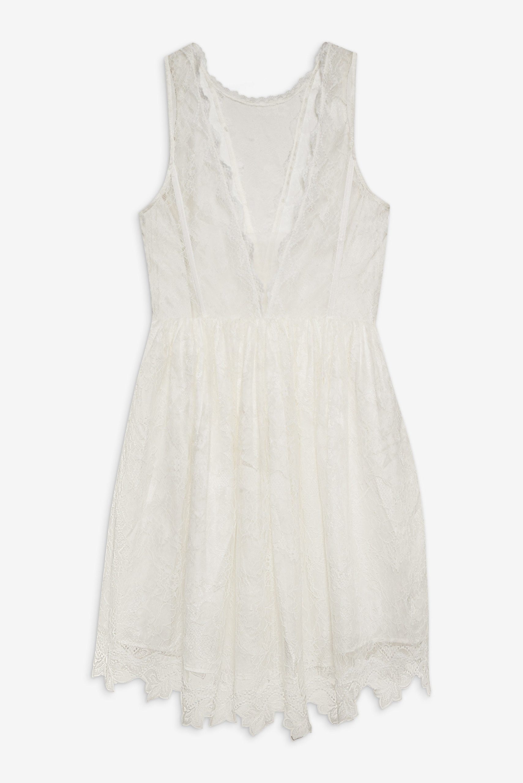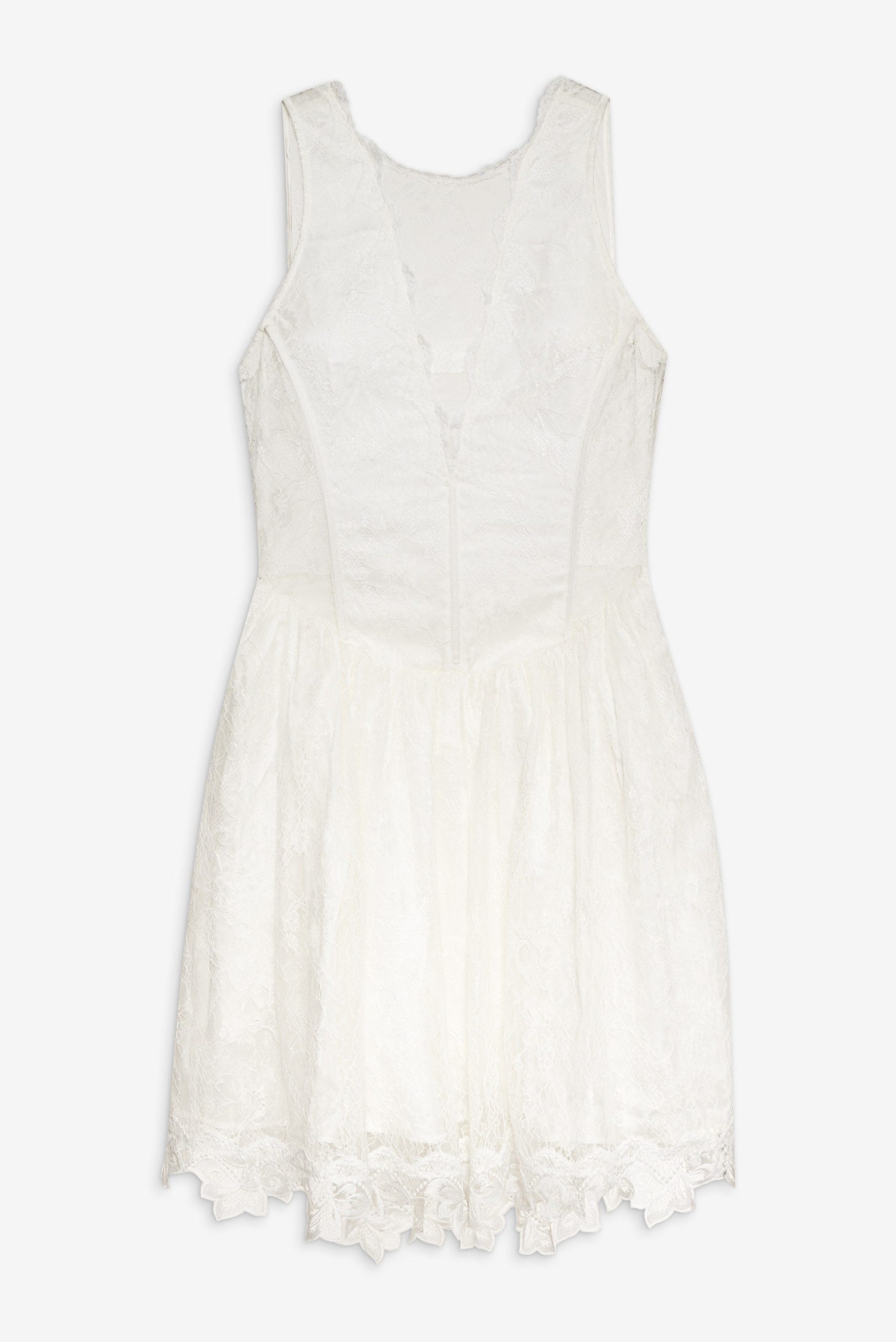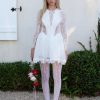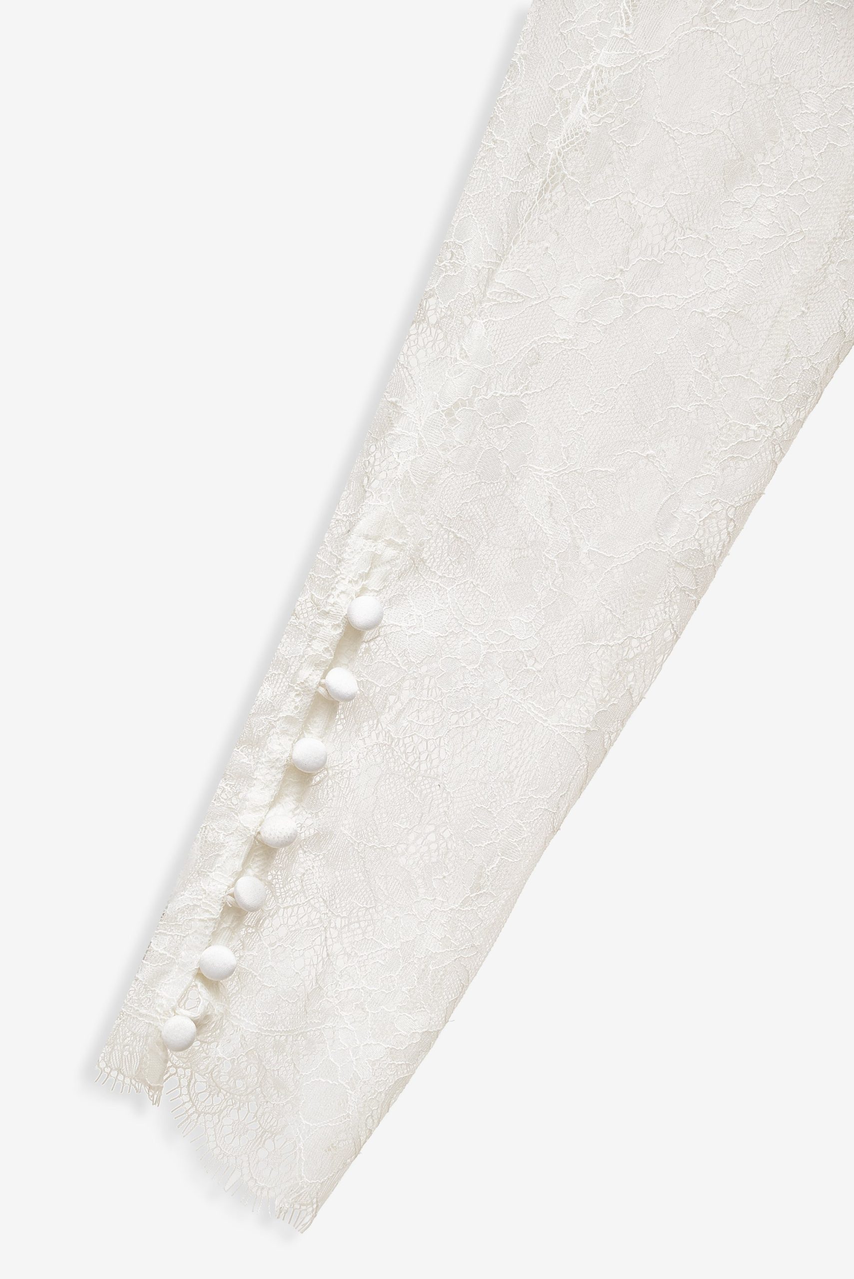 Designed for the elegant bride, the Tara white bridal mini dress is cut to a high neck silhouette with a playful scalloped trims and a seductive sheer lace inset at the front and back. Perfect as a bachelorette dress or second dress for wedding reception, it has a fully gathered skirt with tulle layered underneath for extra volume. Pair it with the Tara Lace Shrug for a bridal co-ord set.
