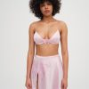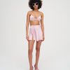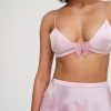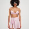 In search of a heart-fluttering festival outfit? You should meet the Truette pink bralette top, a satin triangle bra finished with a center-front butterfly appliqué. Pair it with the Truette Bralette top for a free-spirited look.