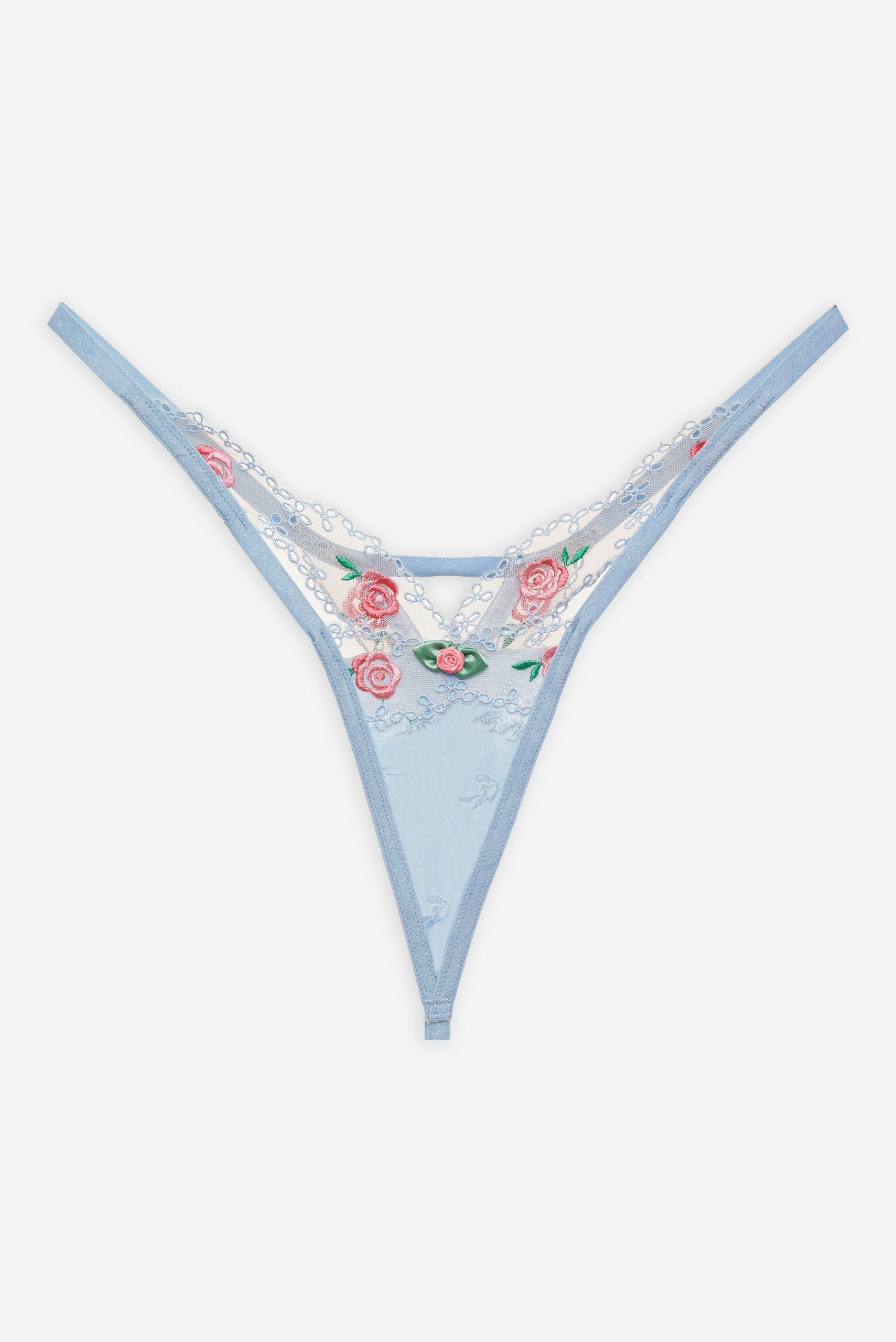 vintage rose eyelet thong panty blue