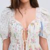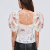 The Violette pink top is designed by it’s ultra-romantic secret garden-inspired patchwork print. Featuring a tie front and crochet lace trims throughout, this patchwork top exudes femininity with its elasticized puff sleeves, fixed bows at the side seams, and eyelet trim.