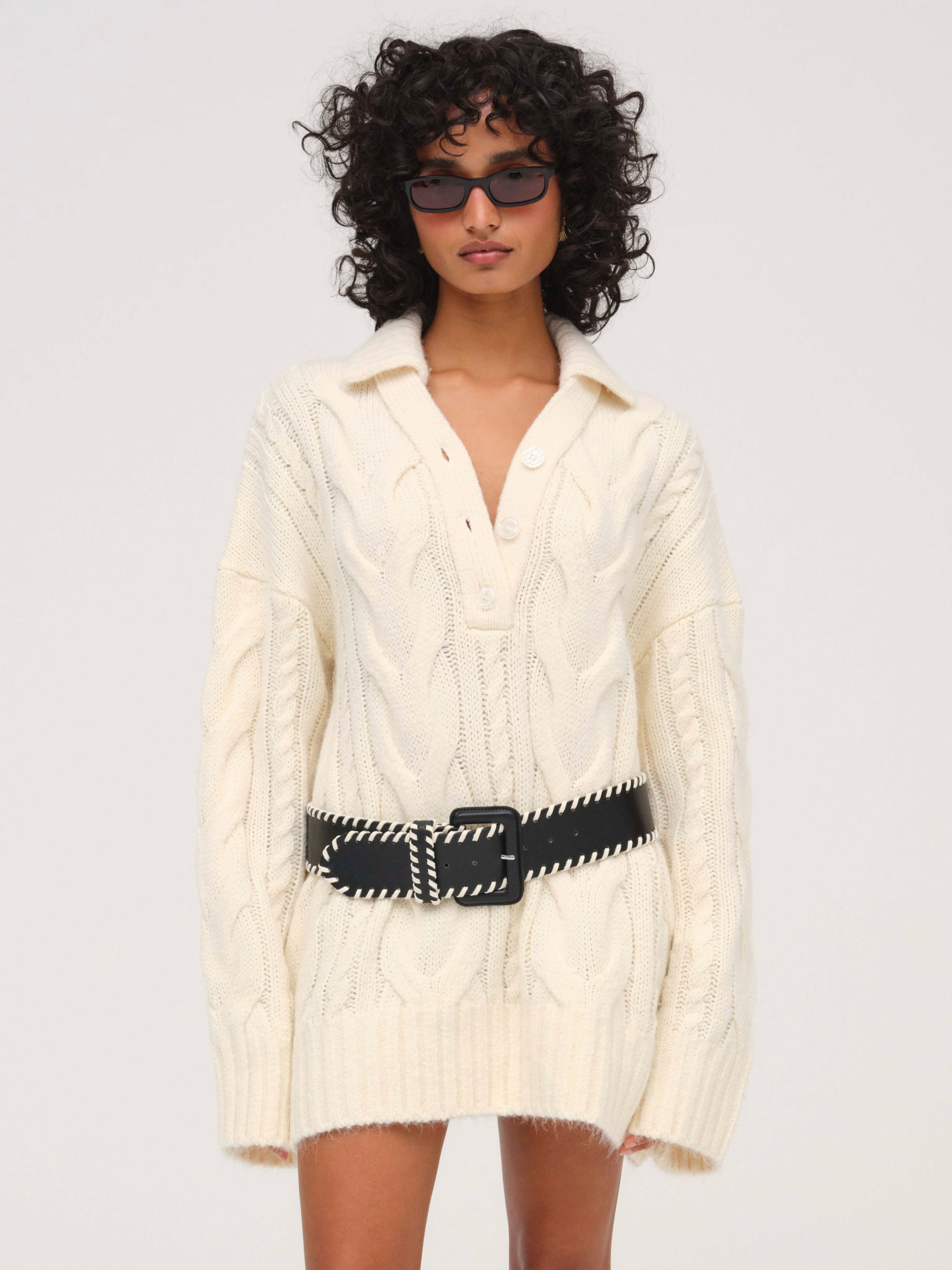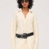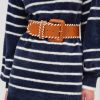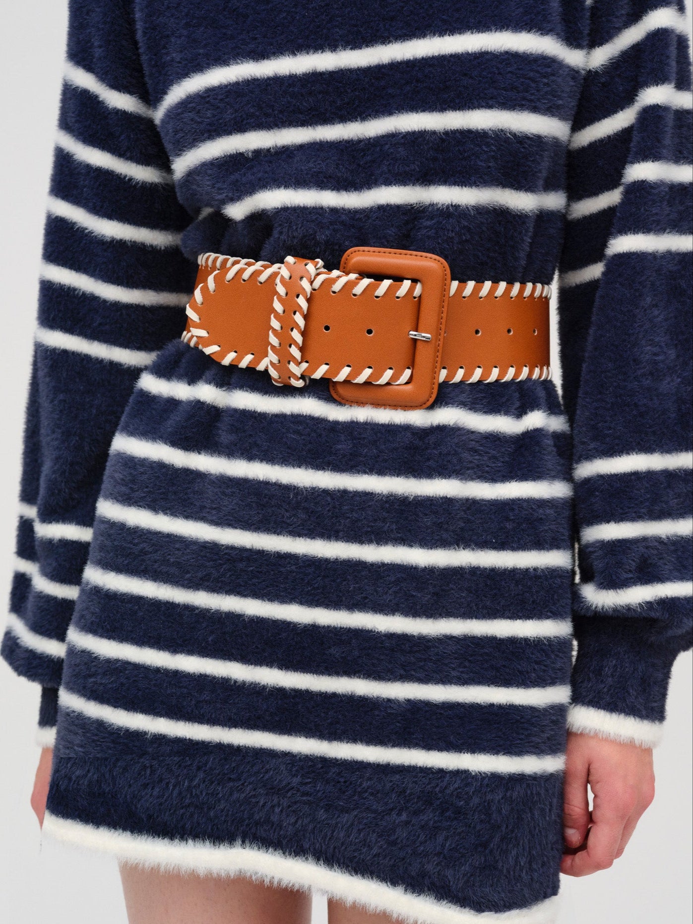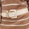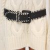 For a timeless, chic look. Crafted in Faux Leather, this wide black and white stitch belt is the perfect finishing touch to your spring ensembles.