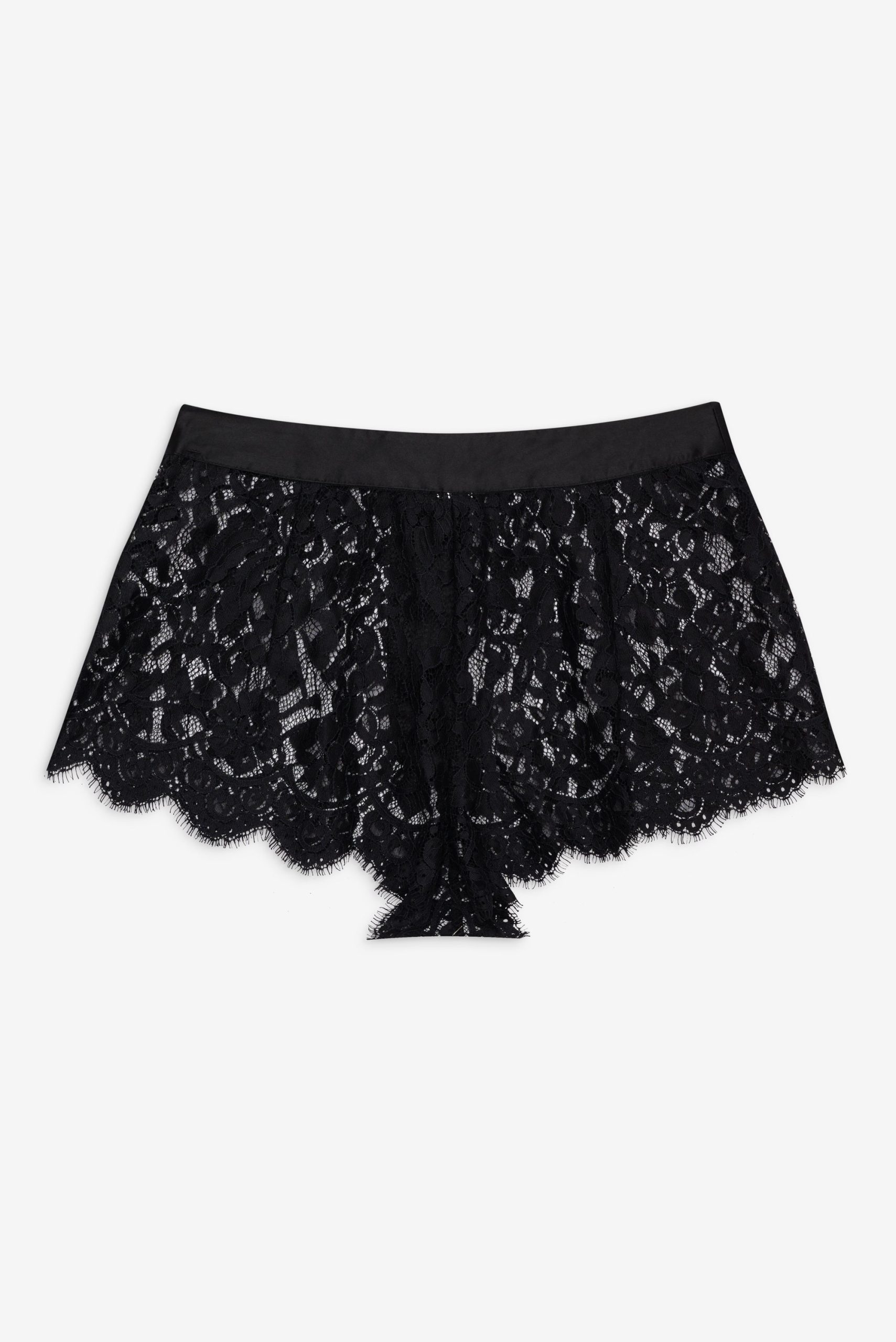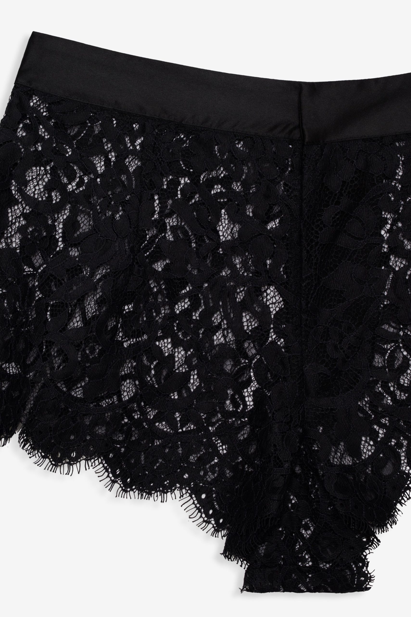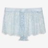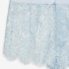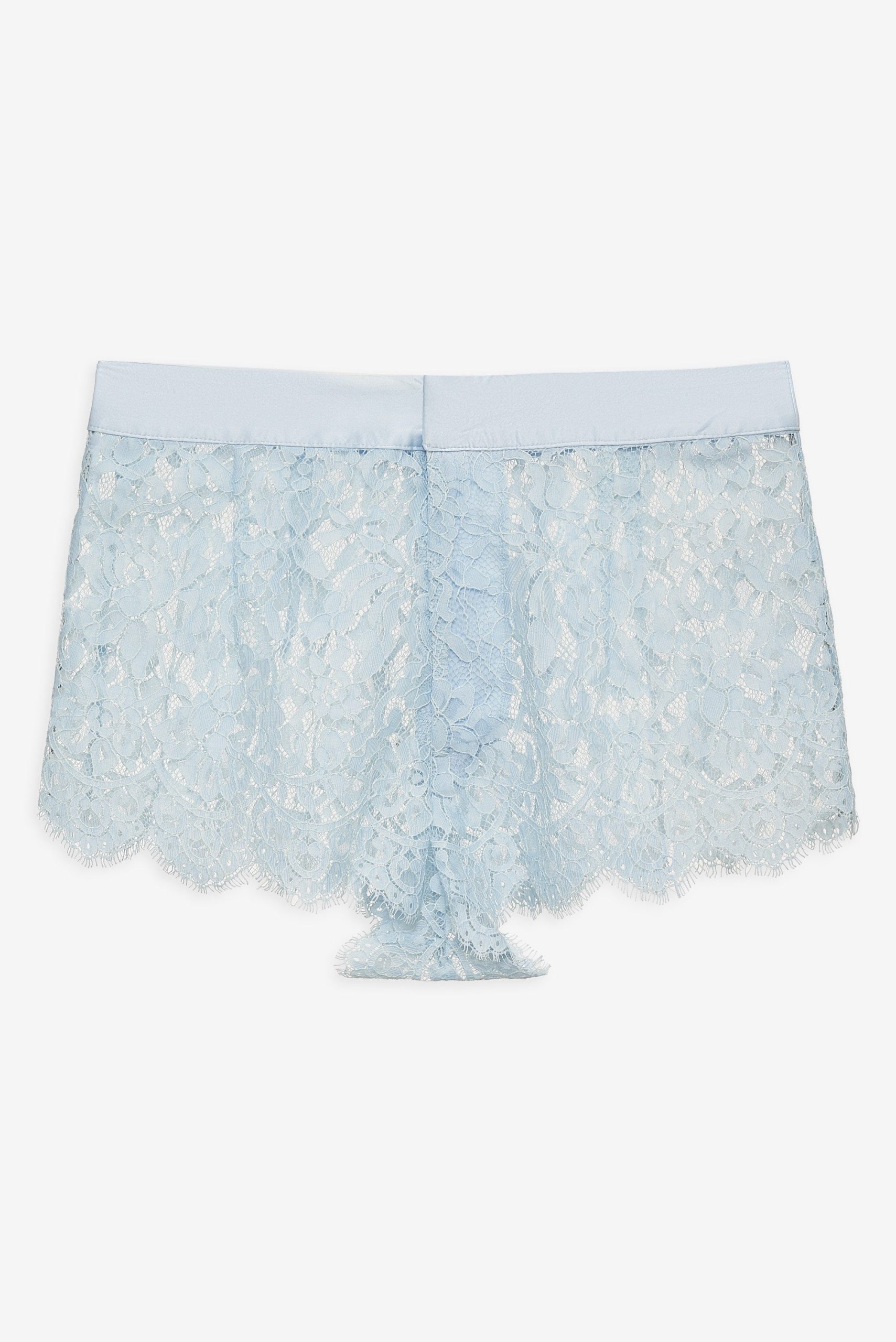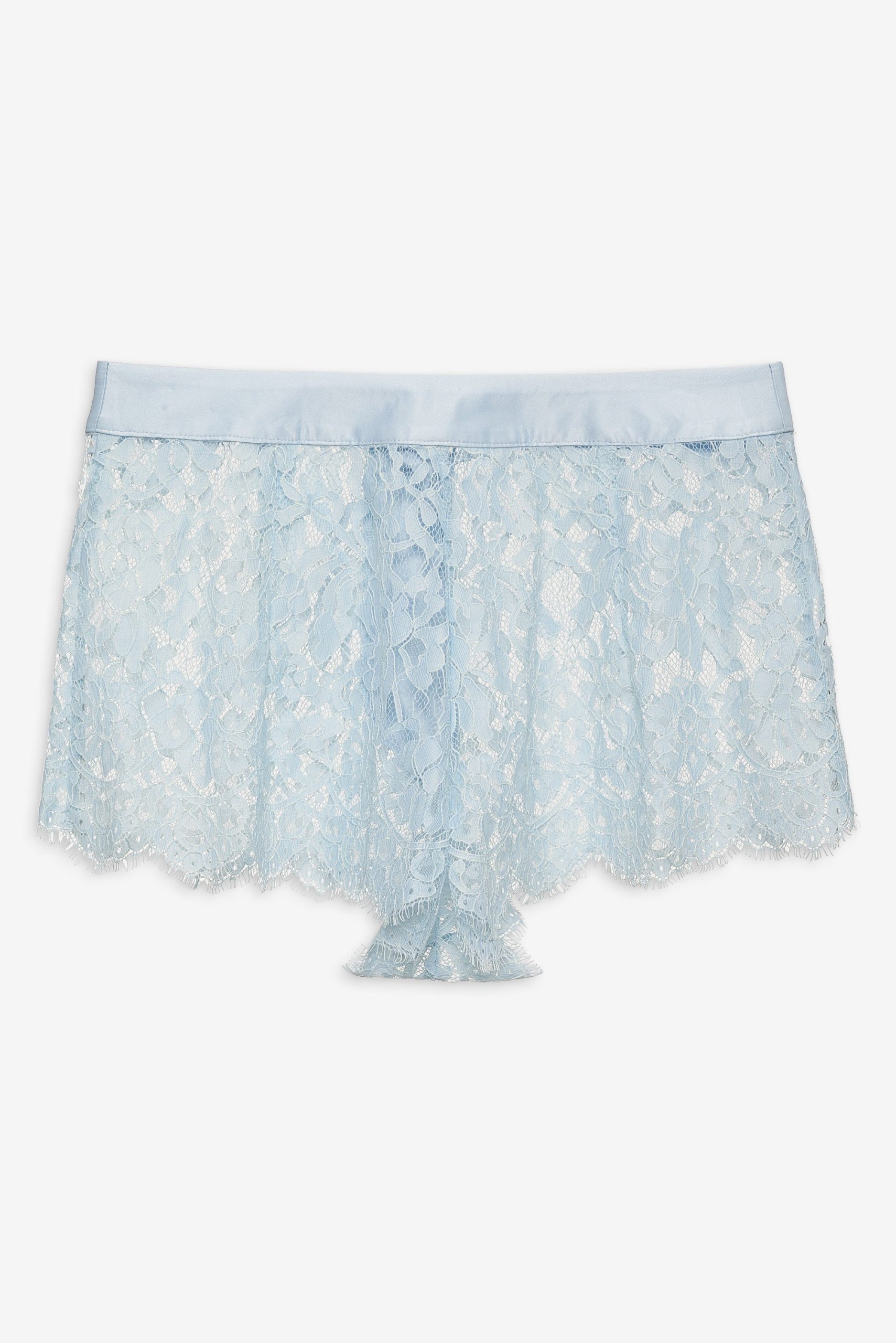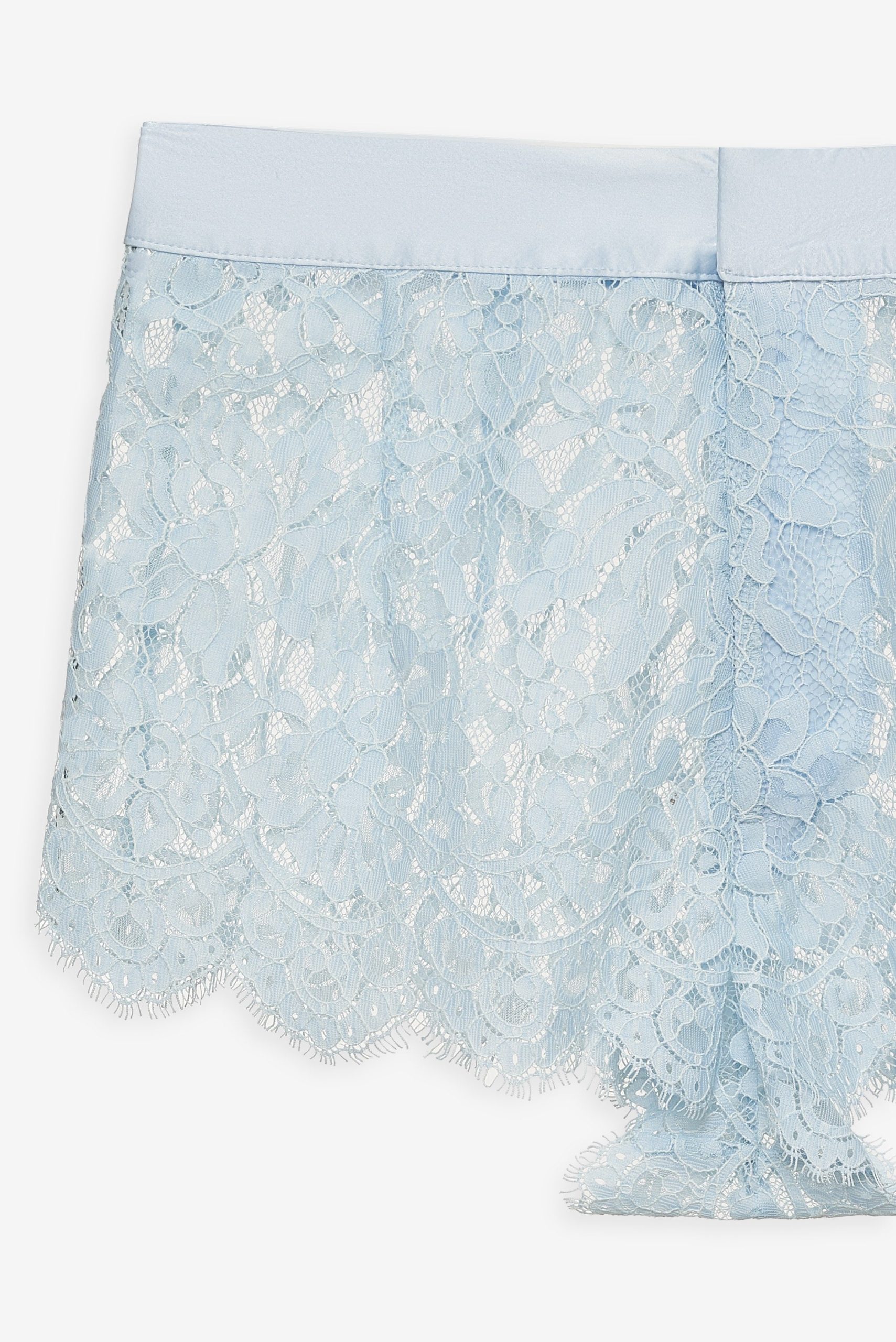 An ode to carefree afternoons and wildflower-strewn meadows, the Zeta lace shorts were made for sun-drenched days. These blue lace shorts are crafted in a delicate floral lace and feature a contrast satin waistband with classic fly front.
