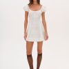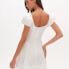 Crafted in crisp taffeta, the Zuri cream mini dress is the perfect dress you can wear all season long. This mini dress shows off a scoop neckline, short puff sleeves, and a flared skirt—it’s finished with a sweet picot trim and skinny tie at the neckline.