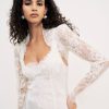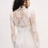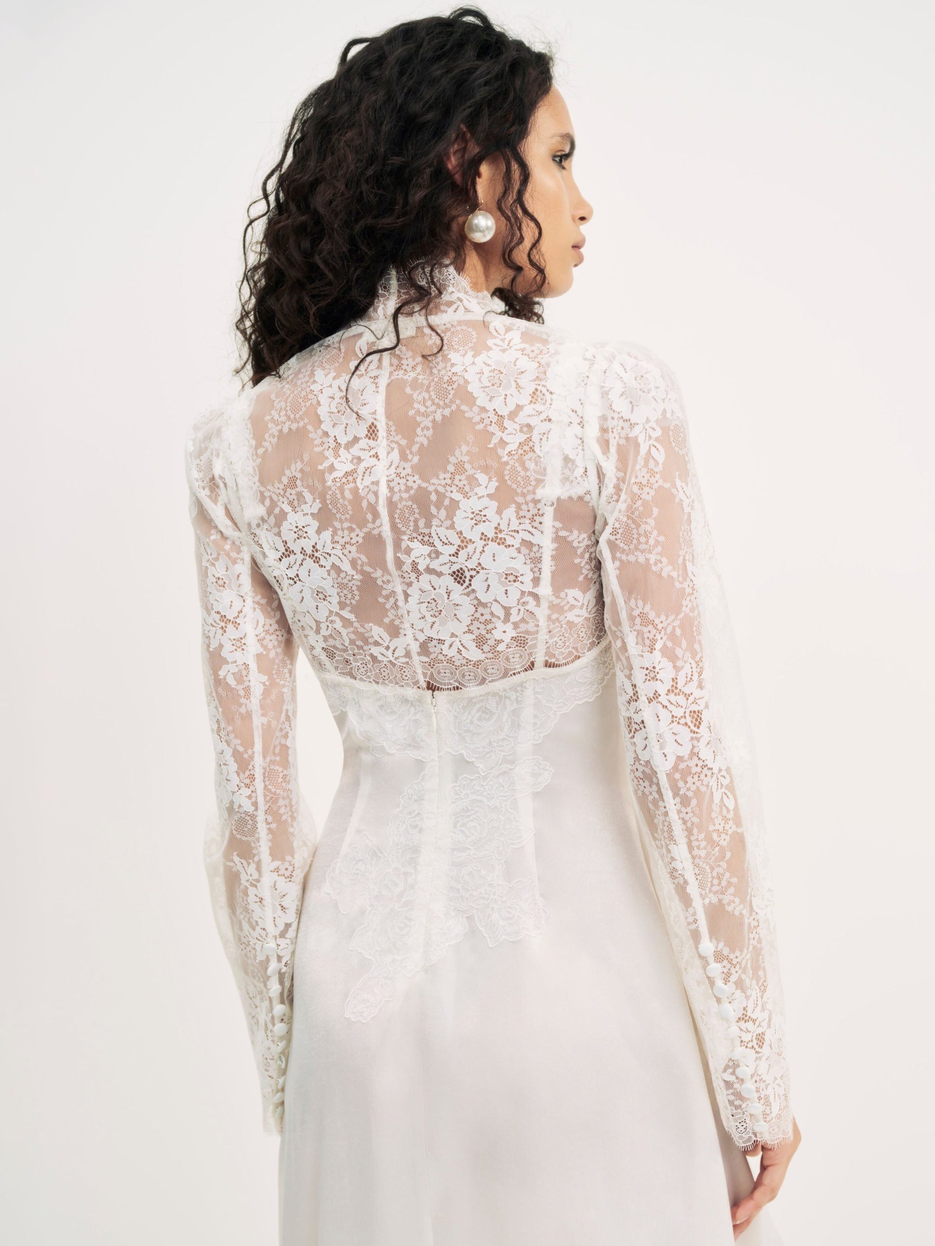 Irresistibly feminine and ultra chic—the Monroe lace shrug is inspired by vintage designs. Crafted in a romantic sheer lace, this wedding bolero features fitted long sleeves with stacked buttons at the openings and is adorned with scalloped lace edges.